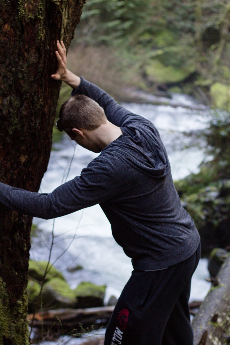 Here is Matt before traversing a fallen log.